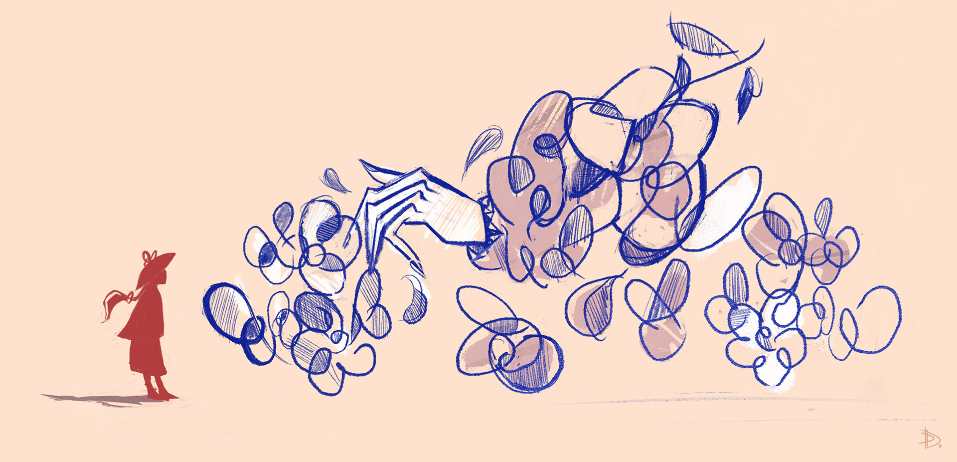 This illustration is inspired by Blackbird by The Beatles, a song often interpreted as a metaphor for people striving for equality during the civil rights movement in the United States. The vibrant colors beneath the bird’s wings celebrate the beauty and strength found in diversity. Created during the Editorial Drawing course, as part of the MFA in Drawing program at FBAUL.