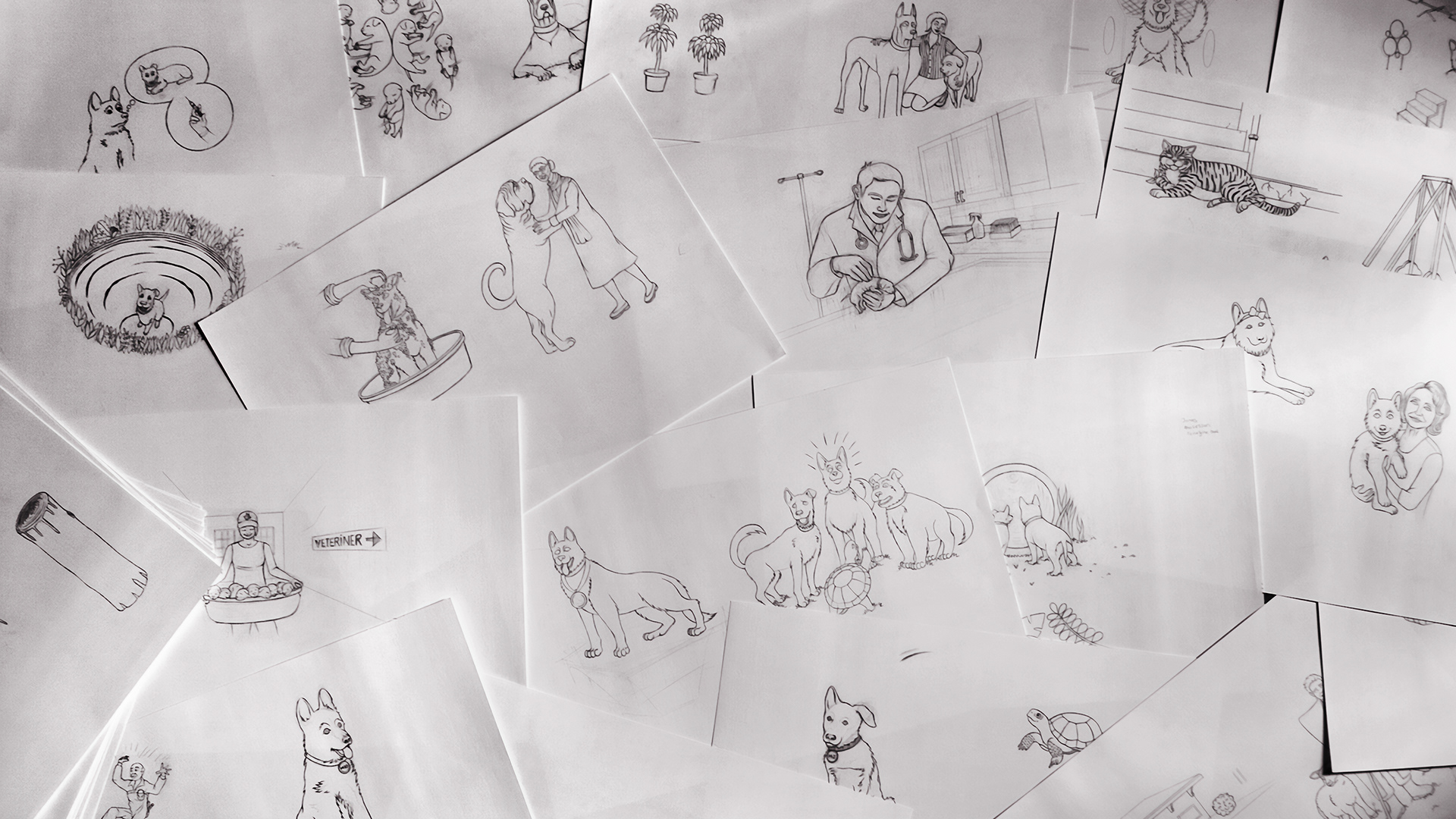 The Tracking Dogs series by Gülten Dayioglu invites young readers into the exciting and spirited world of German Shepherd dogs. I illustrated the first story of this series, The A-Team is Born, originally titled A Takimi Doguyor, which follows the adventures of nine German Shepherd siblings, each with unique characteristics.