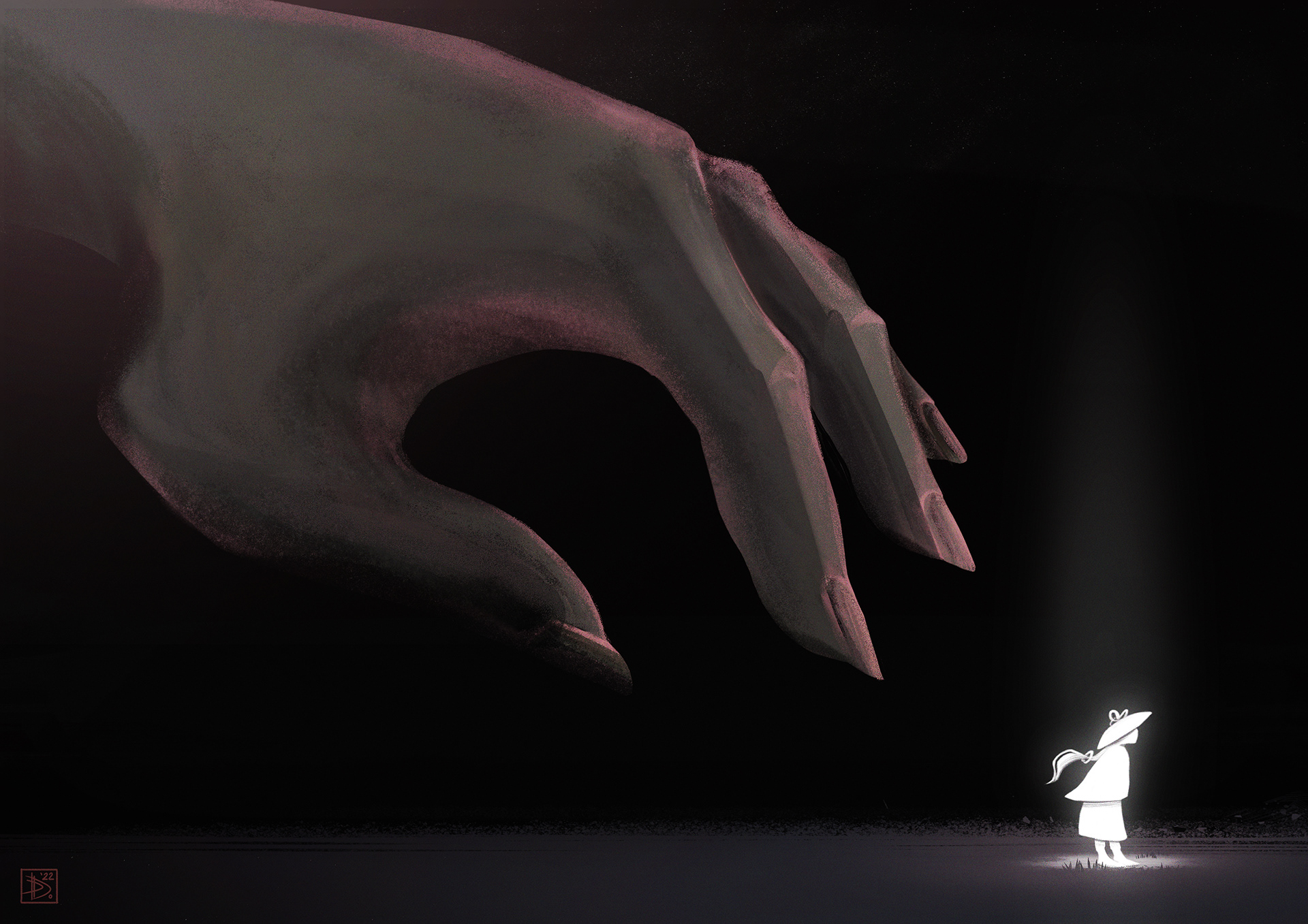 The illustration depicts a moment of vulnerability, with a mysterious hand reaching towards a girl wearing a hat. In my mind, the hand was trying to steal her hat... The concept later became a starting point for developing The Searcher. Created during the Editorial Drawing course, as part of the MFA in Drawing program at FBAUL.