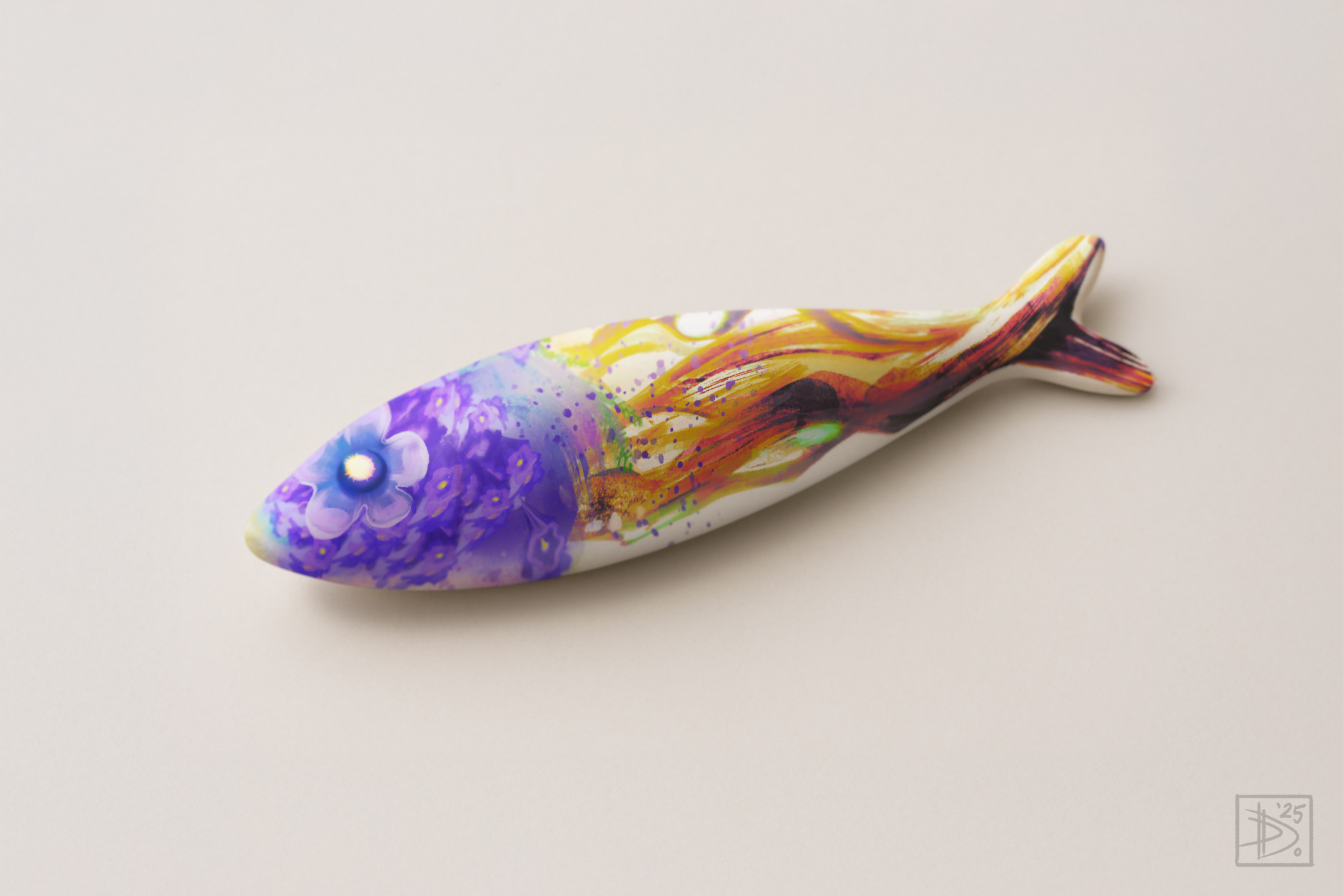 This illustration was created inside the sardine silhouette provided by the competition. Although it didn’t make it to the final selection, I wanted to share it — along with a mock-up imagining how the design might look if it were applied to a ceramic sardine.